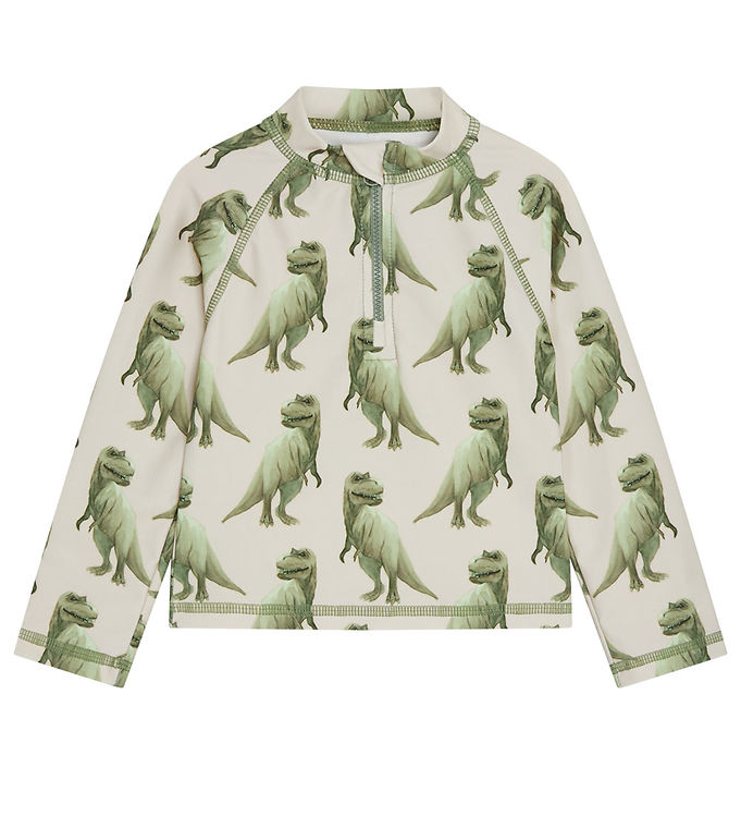 Badeblusen kommer i en smuk Seagrass farve, der er både stilfuld og unik. Med det sjove dinosaurmotiv er denne badebluse perfekt til både drenge og piger, der elsker at udforske og lege i solen.