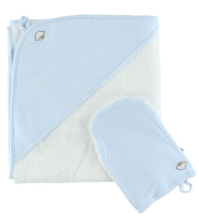 Joha Babyhåndklæde & Handske - 90x90 - Hvid/Lyseblå