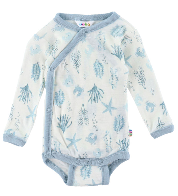 Joha Slå-om Body l/æ - Uld - Lyseblå m. Print