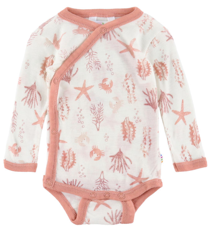Joha Slå-om Body l/æ - Uld - Lyserød m. Print