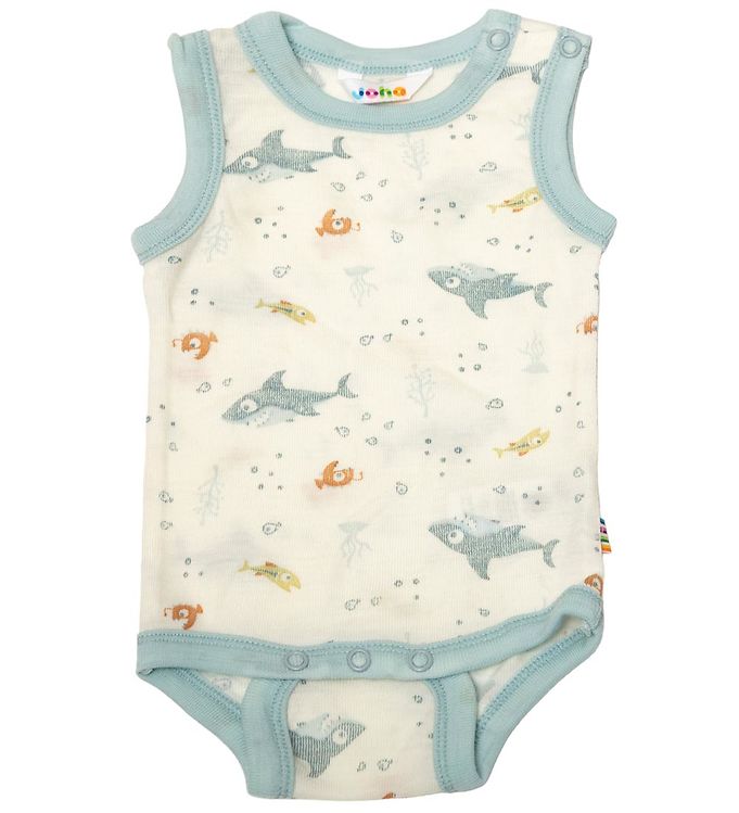Joha Slå om Body u/æ - Uld - Off White/Støvet Blå m. Fisk