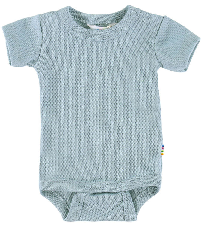 Dette Joha Body produkt kombinerer stil og komfort, hvilket gør det til et ideelt valg til både hverdagsbrug og særlige lejligheder. Med sin bløde blå nuance og korte ærmer er denne body fra Joha perfekt til din lille en.