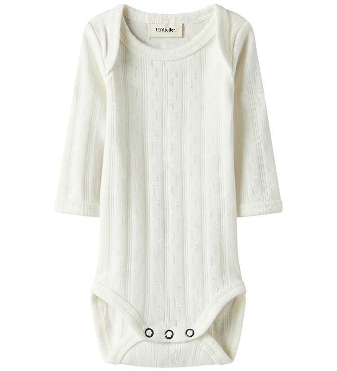 Forkæl dit barn med den skønne Lil' Atelier Body l/æ - NbnBob i en dejlig kokosmælk farve. Denne body er designet med fokus på både stil og komfort, og det delikate hulmønster tilføjer et unikt præg, der gør det til et must-have i dit barns garderobe.