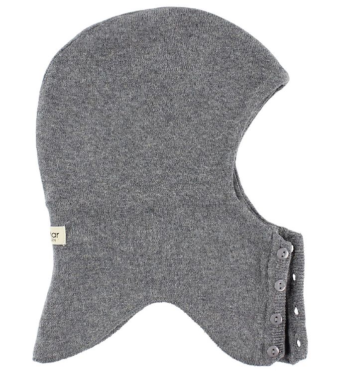 MarMar Elefanthue m. Knapper - Uld/Bomuld - 2-lags - Gråmeleret