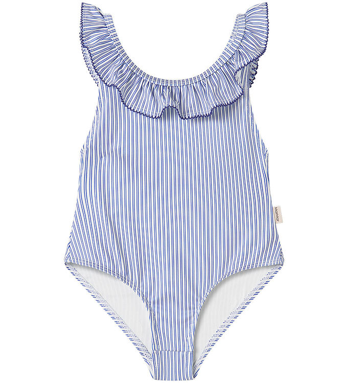Forkæl dit barn med den stilfulde MarMar Badedragt - Swilla i den smukke farve Bolich Blue Stripe. Denne badedragt kombinerer elegance og funktionalitet, hvilket gør den til det perfekte valg til sommerens sjove dage ved stranden eller i svømmehallen.