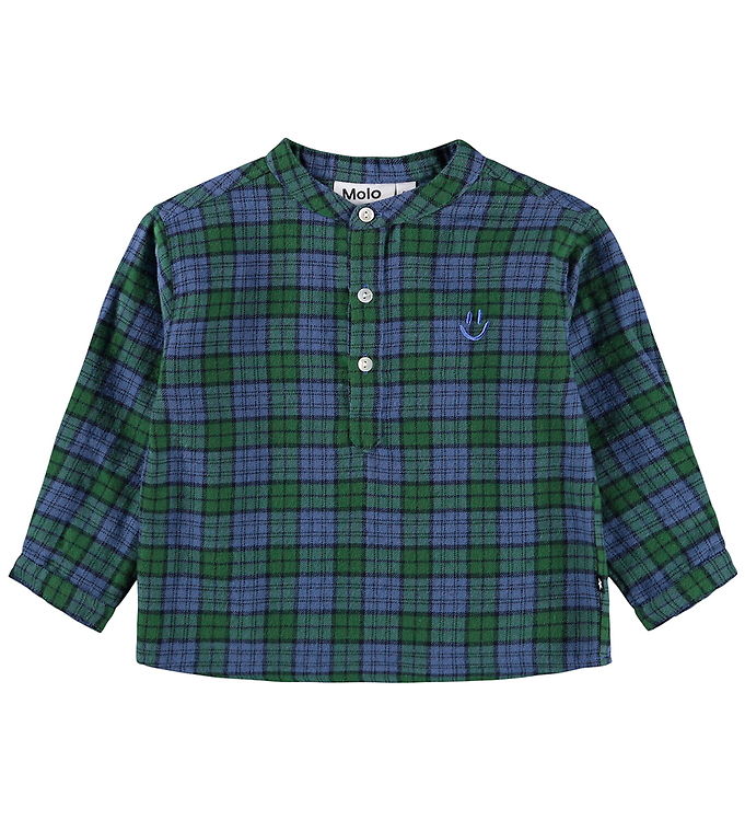 Skjorten er fremstillet af bløde, åndbare materialer, der sikrer, at dit barn kan bevæge sig frit og behageligt hele dagen. Med sit klassiske ternede design i nuancer af blå og grøn, tilføjer den et moderne touch til ethvert outfit.