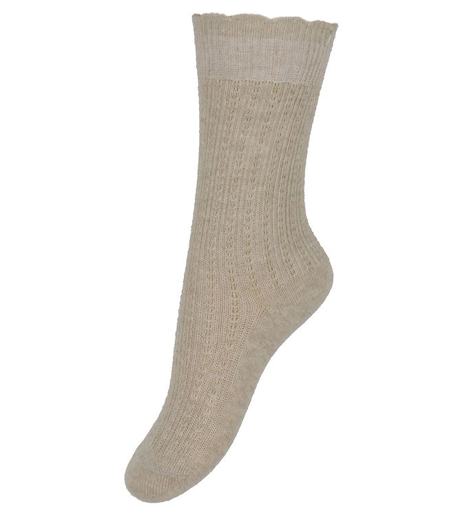 MP Strømper - Inger - Beigemeleret m. Hulmønster
