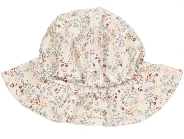 Super fin sommerhat med blomster fra Müsli. Hatten har en stor skygge, der skĉrmer for solen i bċde ansigt og nakke.Hatten er fremstillet i en dejlig ċndbar, blĝd og strĉkbar kvalitet, der giver en behagelig pasform. Materiale: 95% Bomuld, 5% Elastan