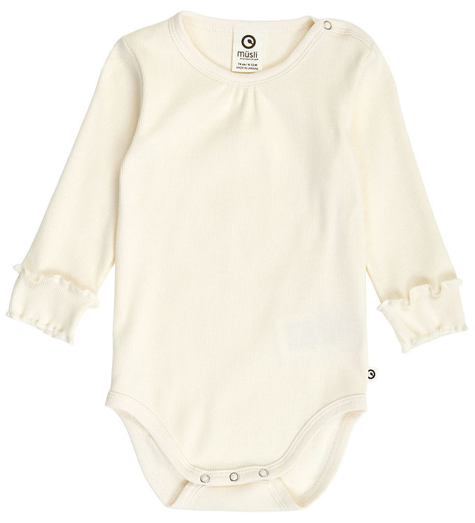 Müsli Body L/Æ - Rib - Cozy Me - Tofu er perfekt til både hverdag og festlige lejligheder. Kombiner den med et par leggings eller under en sød kjole for et fuldendt look. Giv dit barn det bedste med Müsli og vælg kvalitet, der holder.