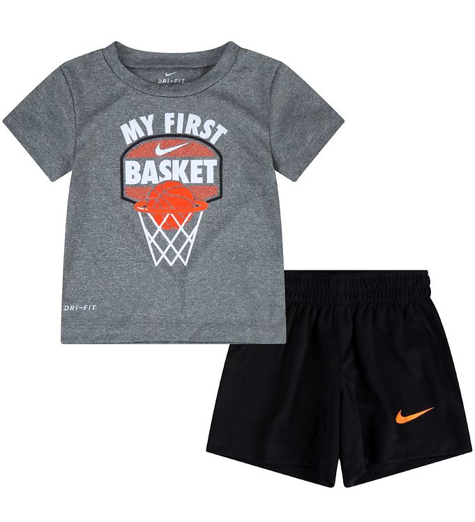 Nike Shortssæt - T-shirt/Shorts - My First Basket - Sort/Grå