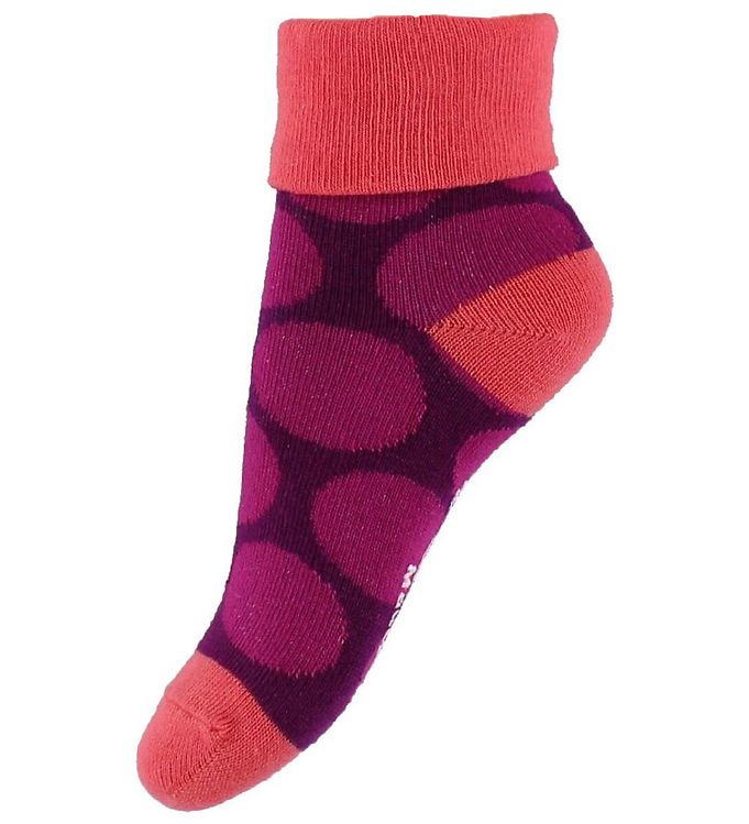 Melton Gåstrømper - Lilla m. Prikker