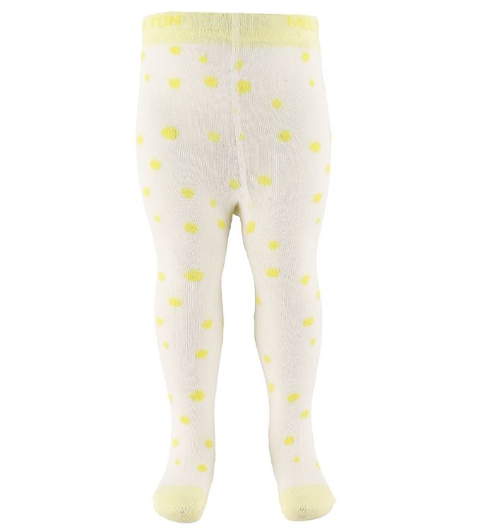 Melton Strømpebukser - Hvid/Gul m. Prikker