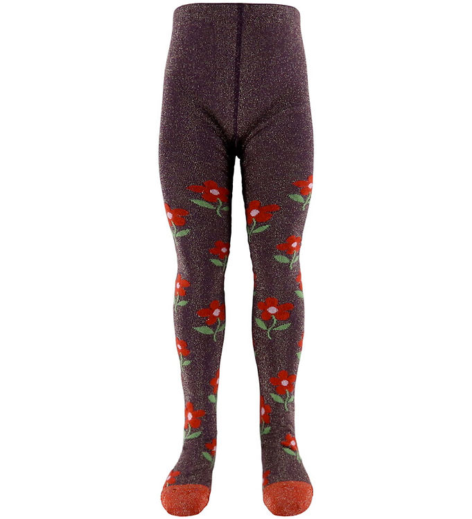 Melton Strømpebukser m. Blomser - Glitter - Hortensia