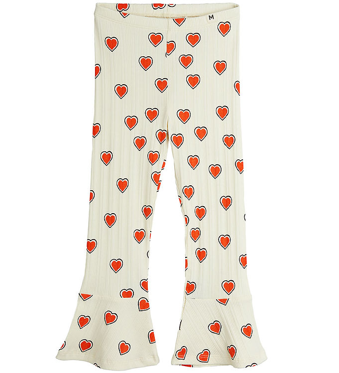 Mini Rodini Bukser - Rib - Offwhite m. Hjerter