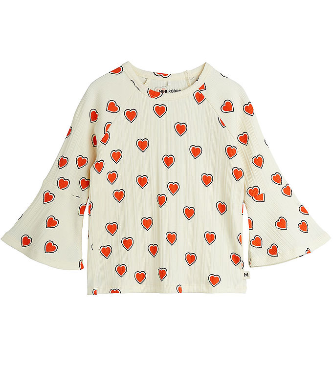 Mini Rodini Bluse - Rib - Offwhite m. Hjerter