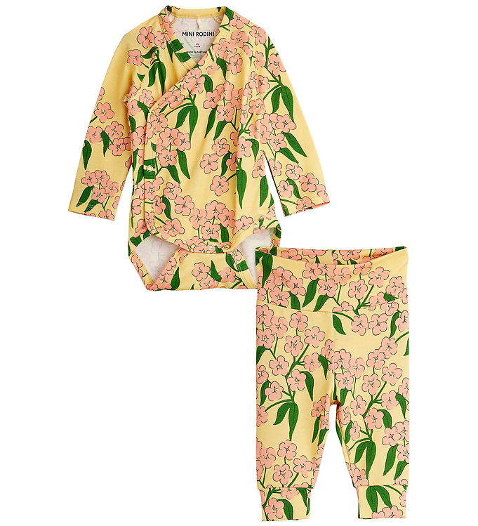 Mini Rodini Sæt - Bukser/Slå-om Body l/æ - Alpine Flowers - Gul