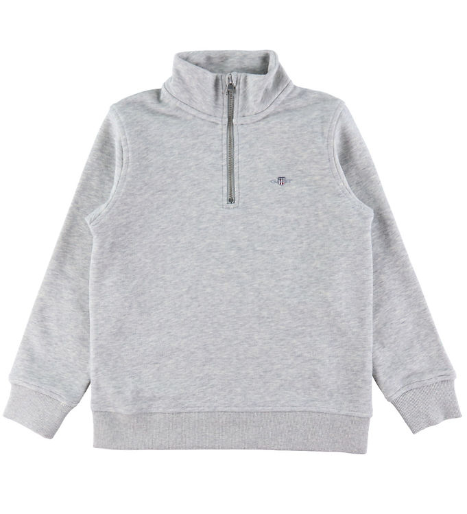 GANT Sweatshirt - Shield Half Zip - Light Grey Melange