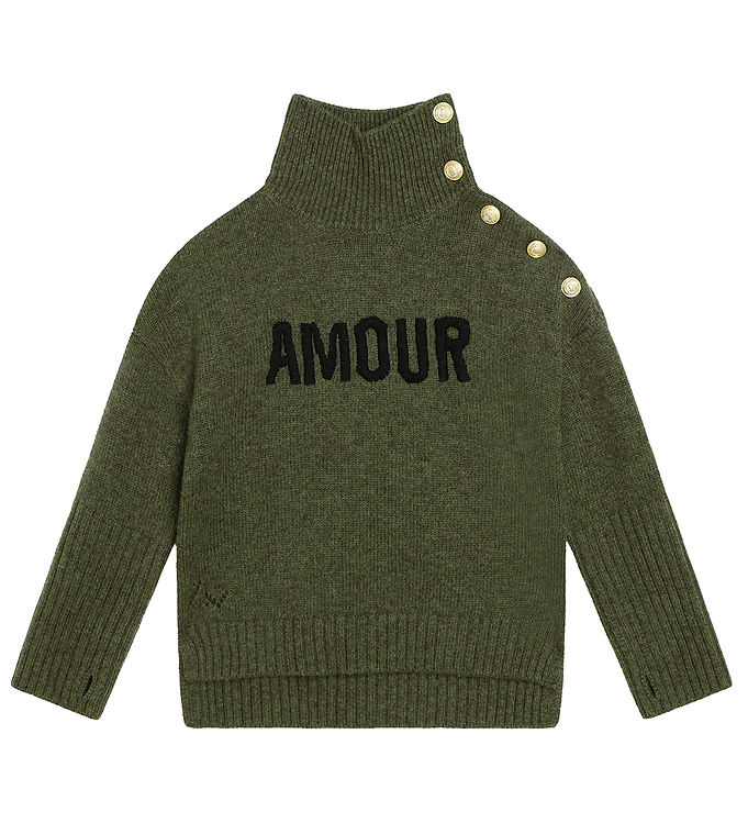 Zadig & Voltaire Bluse - Uld - Grønmeleret m. Tekst/Knapper