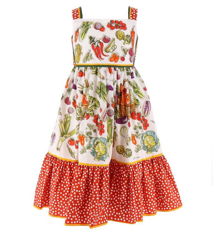 Dolce & Gabbana Kjole - Capri - Hvid/Rød m. Grøntsager