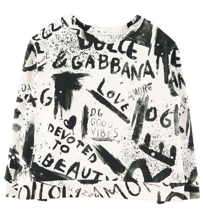 Dolce & Gabbana Sweatshirt - DG Next - Hvid/Sort m. Perler