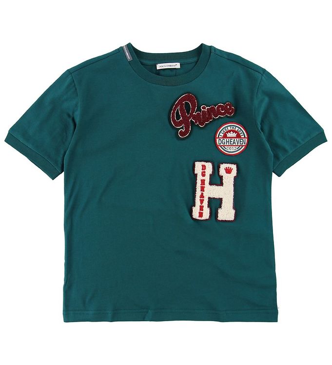 Dolce & Gabbana T-shirt - Petroleumsgrøn m. Patches