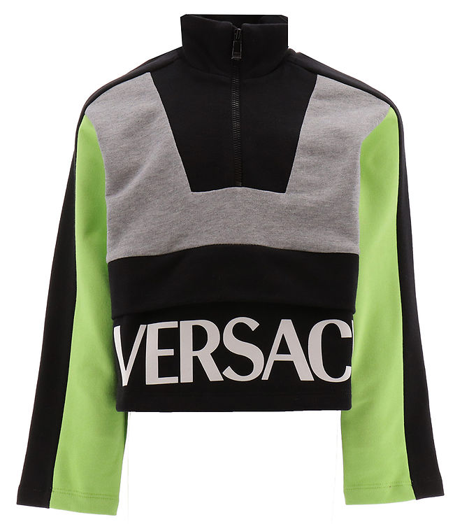 Versace Sweatshirt m. Lynlås - Gråmeleret m. Sort/Neongrøn