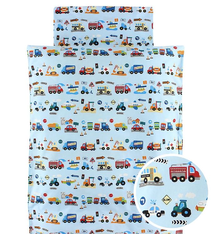 Nørgaard Madsens Sengetøj - Baby - Lyseblå m. Maskiner