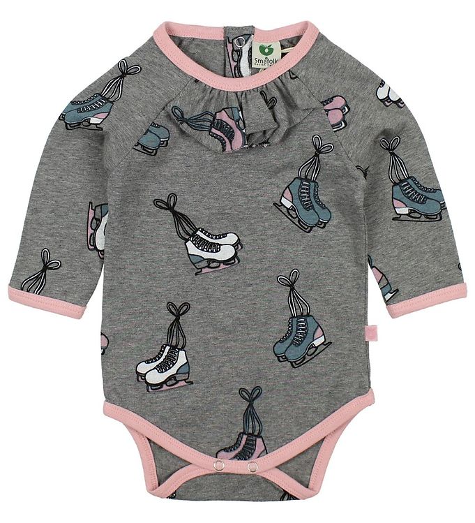 Småfolk Body l/æ - Gråmeleret m. Skøjter