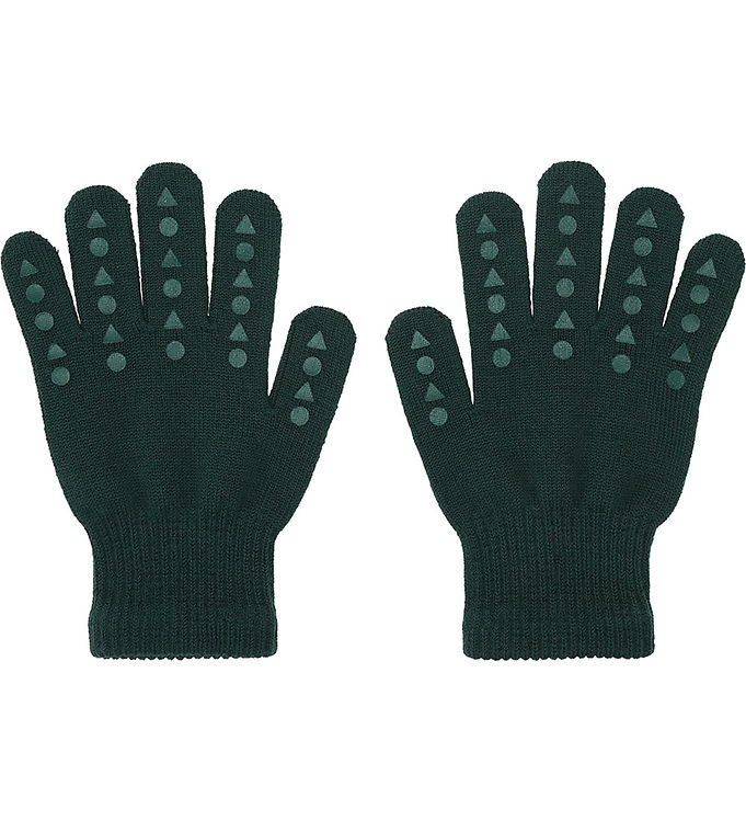 GoBabyGo Handsker - Strik - Uld - Forest Green m. Dupper