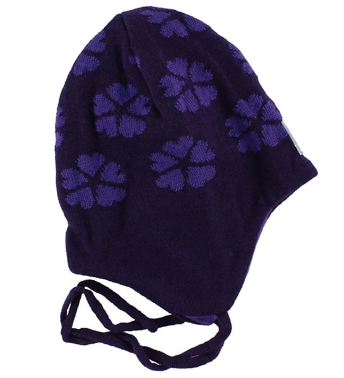 Reima Strikhue - Snygg - Uld/Bomuld - Lilla m. Kløvere