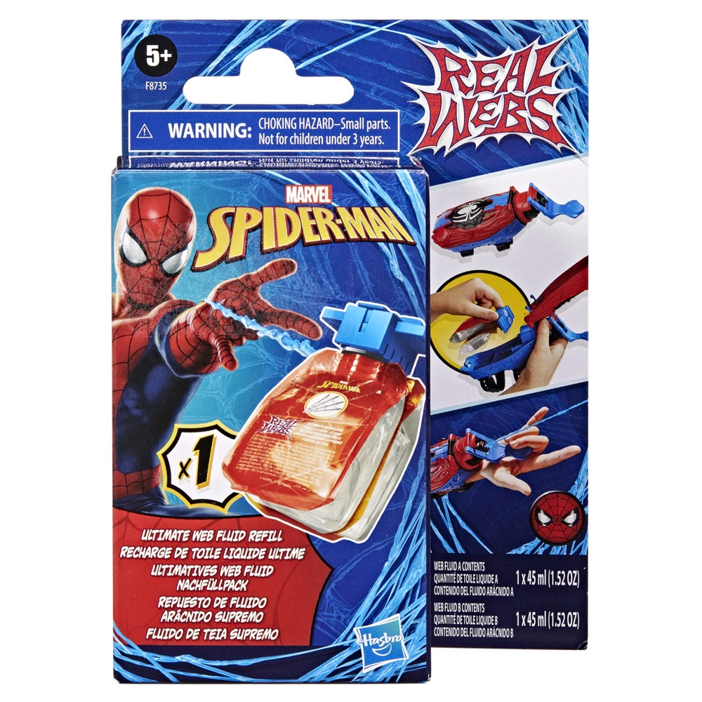 Genlad med denne Marvel Spider-Man Real Webs-genopfyldning af Ultimate Web-væske! Tank op med edderkoppespind til Spider-Man-legetøjet Real Webs Ultimate Web-blaster, så børn fra 5 år hurtigt kan komme ind i kampen igen! 1 genopfyldning medfølger og er ku