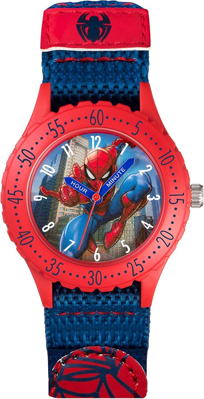 Time Teacher ur fra Marvel Spiderman med visere, der er lette at forstå. Perfekt til sjov indlæring. - Urskive af plexiglas. - Stofrem. - Vandafvisende. - Kvartsur. - CE-mærket. - Rustfrit stål, stof. - Batterier medfølger.