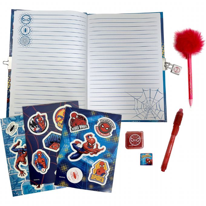Spiderman papirsæt med dagbog og hemmeligt blæk. Skriv din egen hemmelige dagborg uden andre end dig kan læse den.