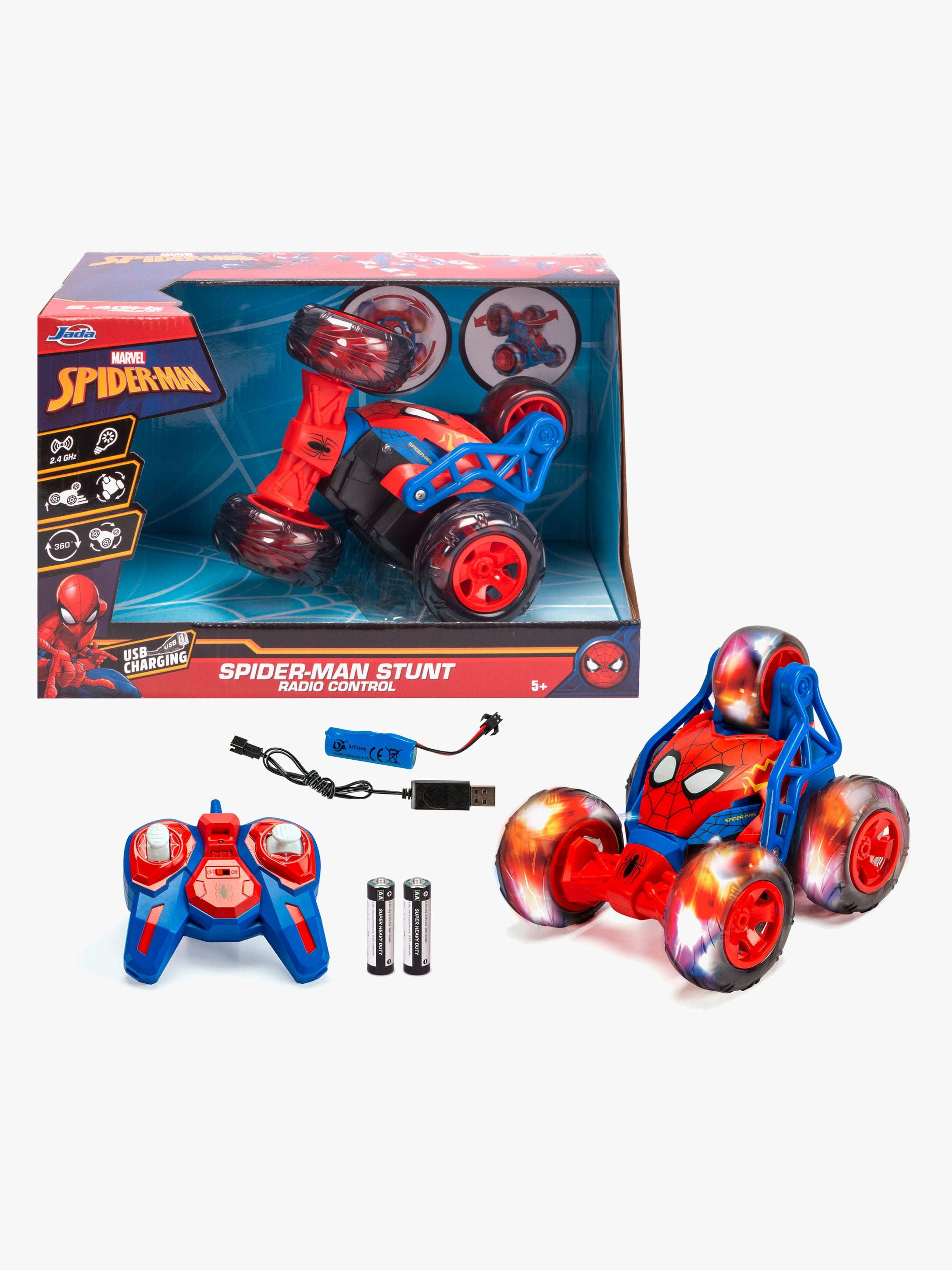 Jada Toys Marvel Spider-Man fjernstyret stuntbil er den perfekte gave til børn, der elsker action og eventyr. Den kombinerer underholdning med udvikling af motoriske færdigheder og kreativ leg. Med sit Spider-Man-tema vil den helt sikkert fange børns interesse og give dem en følelse af at være superhelte i deres egne eventyr.