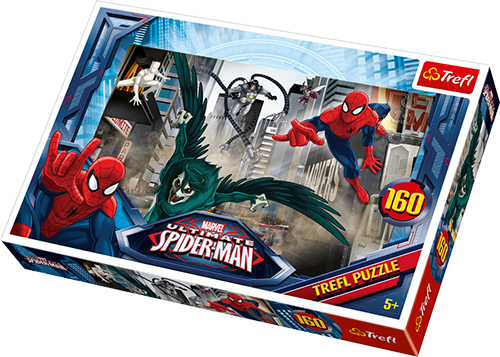 Sejt motiv af Spiderman der jagter en forbryder og redder byen