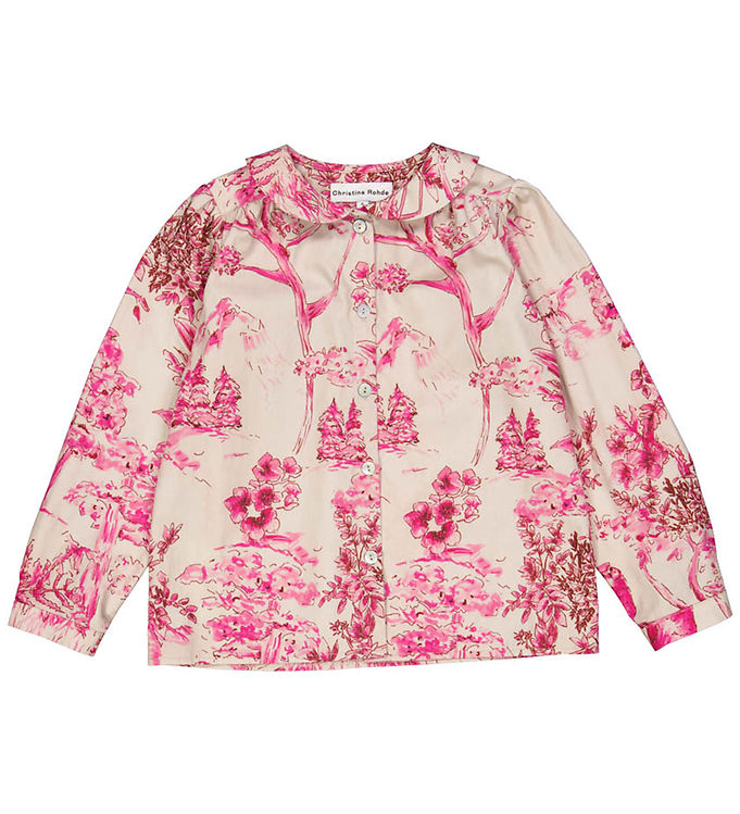 Christina Rohde Bluse - Grå m. Pink Print
