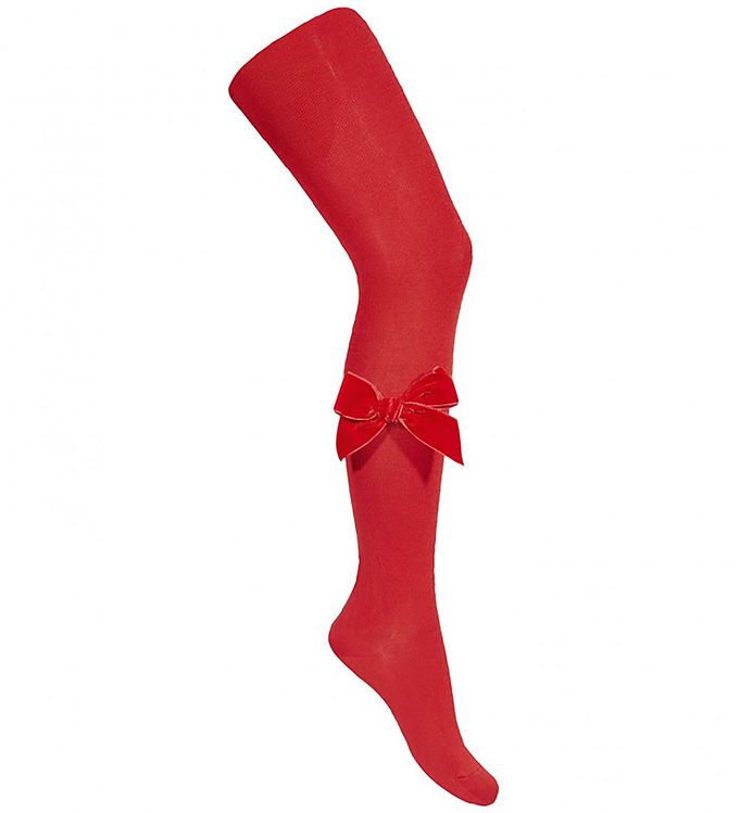 Condor Strømpebukser m. Veloursløjfe - Rød