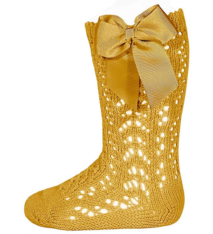 Condor Knæstrømper m. Sløjfe - Strik - Karrygul