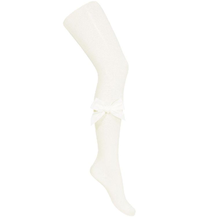 Condor Strømpebukser m. Veloursløjfe - Off White