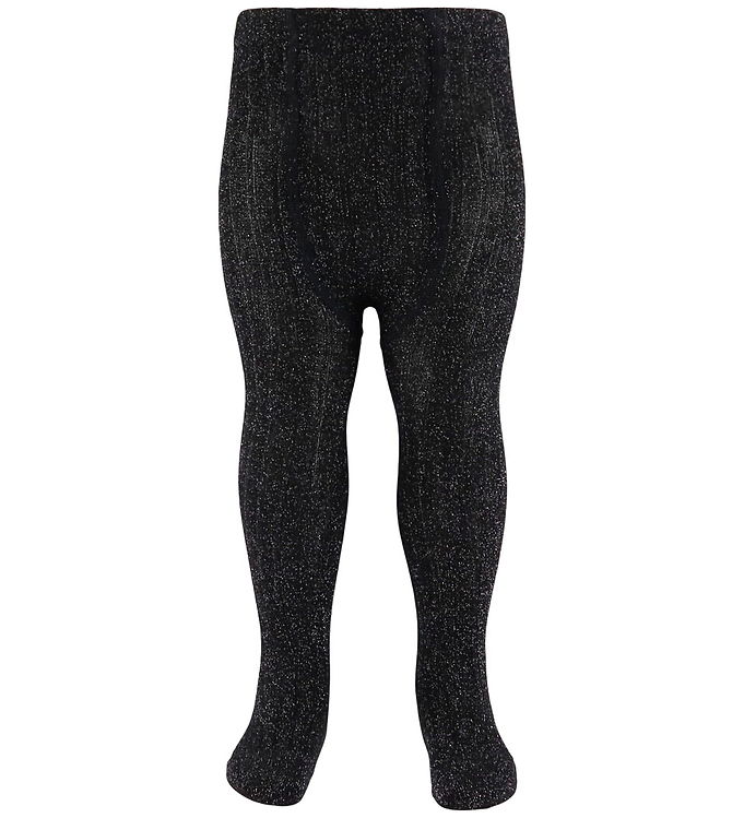 Condor Strømpebukser - Viskose - Rib - Sort m. Glimmer
