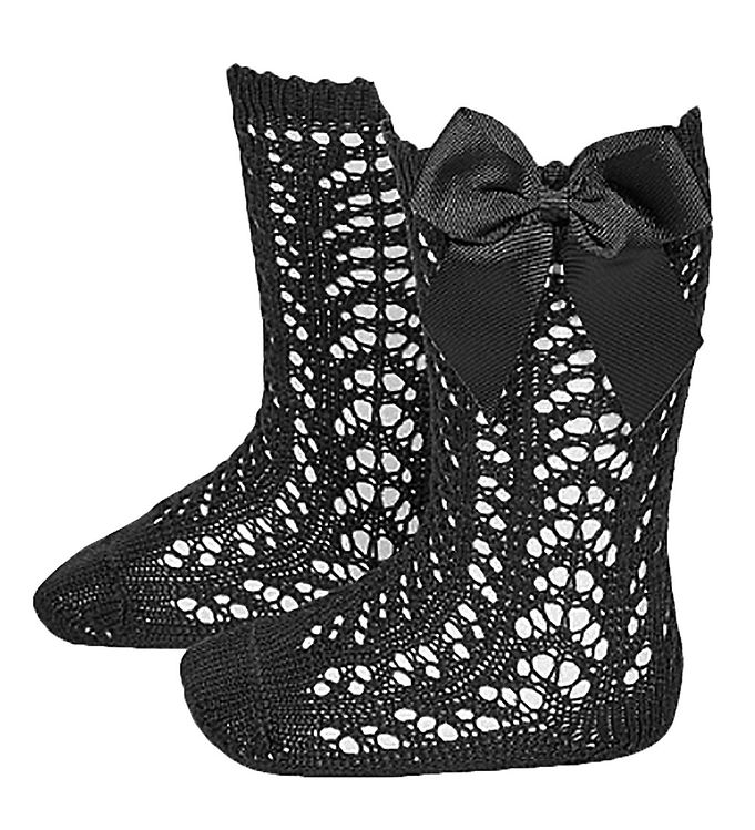 Condor Knæstrømper m. Sløjfe - Strik - Sort