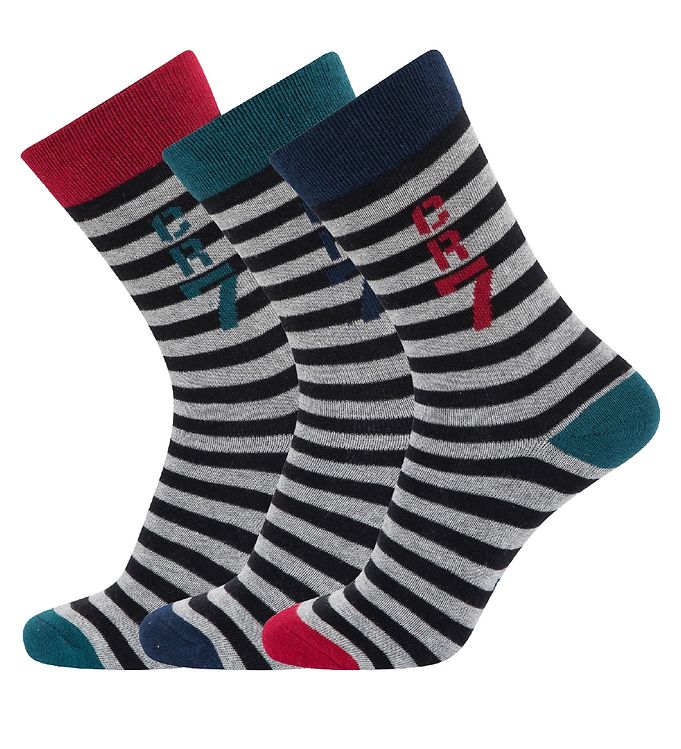 Ronaldo Strømper - 3-pak - Sort/Gråstribet