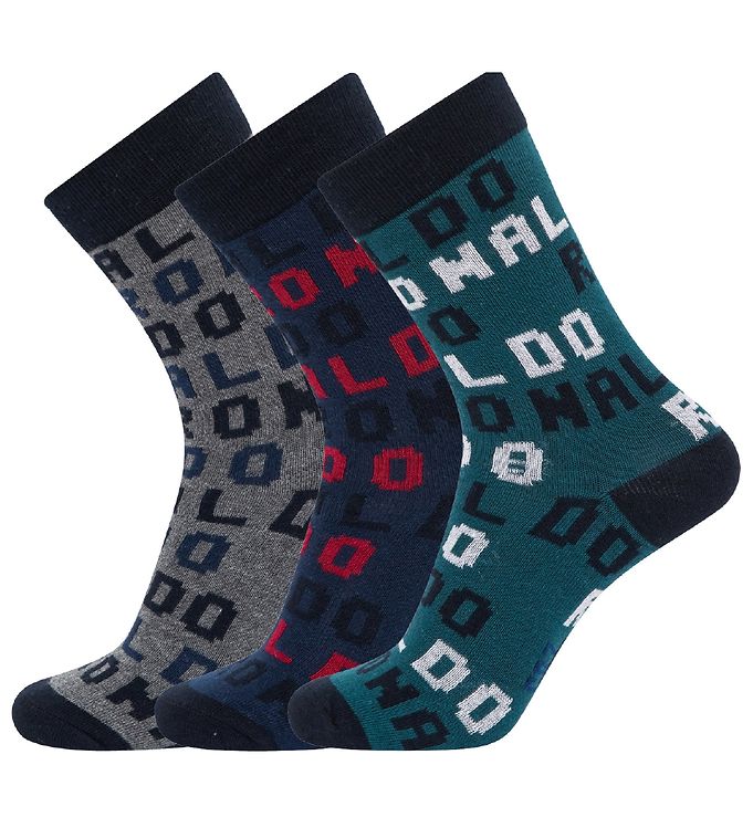 Ronaldo Strømper - 3-pak - Navy/Grå/Turkis m. Print