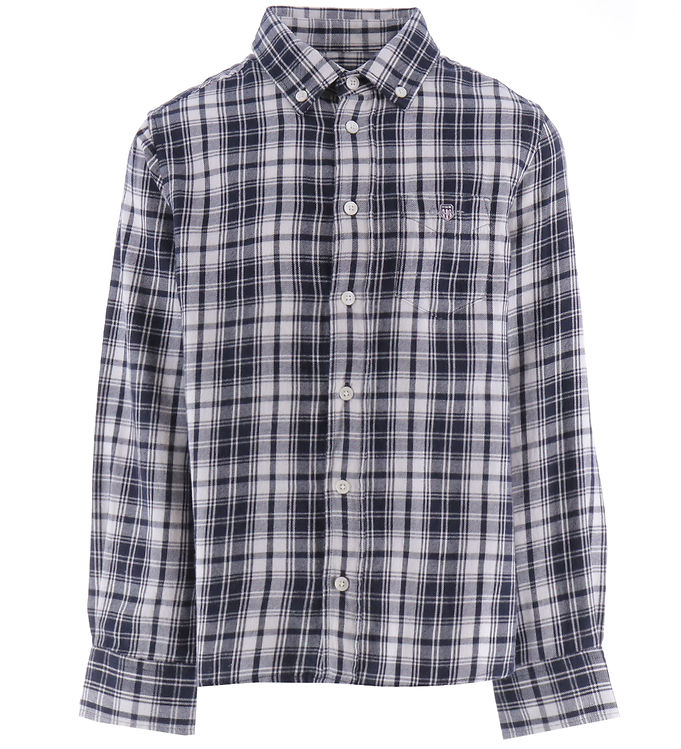 GANT Skjorte - Flonel - Evening Blue m. Tern