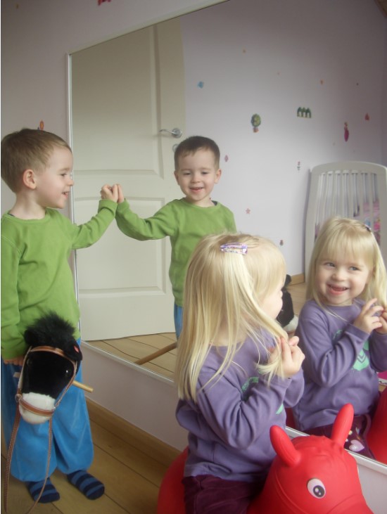 Kæmpestort spejl i brudsikkert acryl 3.050 x 2.050 x 3 mm til at sætte op på væggen. Se hvordan din 1-årige får øje på sig selv første gang og laver ansigter. Se hvordan din 2-årige, 5-årige eller sågar 11-årige danser og laver mooves foran spejlet . Se hvordan kammerater og venner optræder foran det, se hvordan et barn kan øve sig igen og igen i et svært spring. Men husk nu at når dit barn har øvet og øvet, så skal der også komme nogle til forestillingen.Dette spejl må gerne fylde en hel væg i værelset, for dit barn bruger det hele tiden.Spejlet stimulerer dit barn til at lære sig selv bedre at kende, det udvikler motorikken, selvværd og anatomisk forståelse.Mange mange mange timers underholdning i mange mange mange år frem.Prisen er inkl. levering i Danmark.Fakta:Acryl spejlet er 3 mm tykt og vejer 10,5 kgHullerne skal bores med et metalbor. Hvis der bores i pladen skal man have en hård plade bagved, som støder imod pladen, derved undgår man at hullet bliver som en stjerne (ligesom et stenslag på en bilrude). Hullet skal være større end skruen, så spejlet kan bevæge sig, for at undgå at det vil bule alt for meget. Hvis man ønsker et helt lige spejl, anbefales det at spejlet klæbes på en MDF plade, med f.eks. silikone lim og at man herefter hænger MDF pladen på væggen.Vi kan få skåret spejlet i mindre størrelser, hvis det ønskes. Regn da ud fra en str. der er 120 x 242 cm, da vi vil anbefale at få skåret 1 cm af hele vejen rundt for at få en pæn finish. Tilskæring koster ca. 450,- pr. hele spejl som maks kan skæres op i 10 stykker.Hvis man ønsker cirkler eller udskåret figurer er det dyrere?.Bemærk, at der kommer et pallegebyr på 350,-