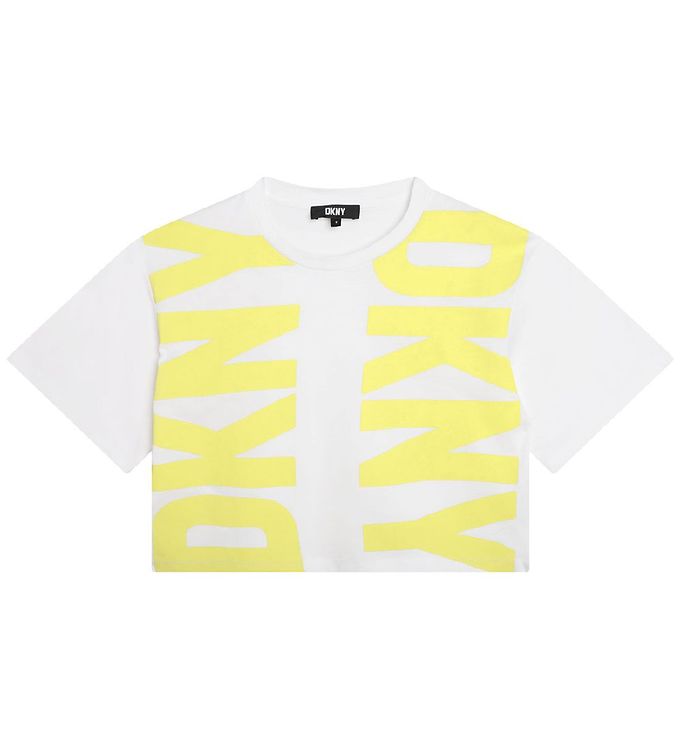 DKNY T-shirt - Cropped - Hvid/Lemon