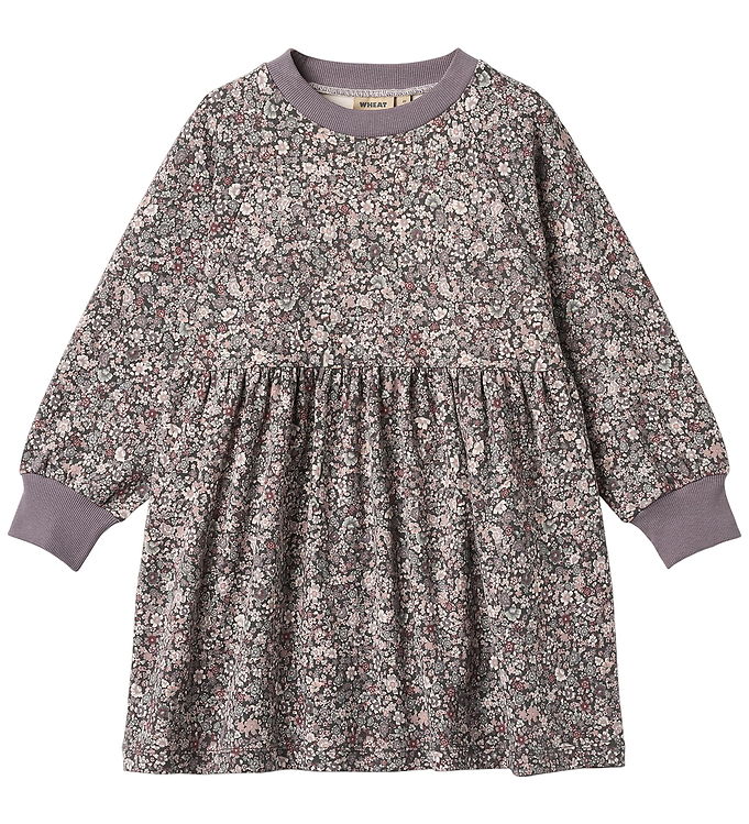 Forkæl dit barn med den vidunderlige Wheat Kjole - Dorthea i en smuk lilla farve dekoreret med blomster. Denne kjole er perfekt til både hverdag og fest, hvor dit barn vil stråle af stil og komfort.