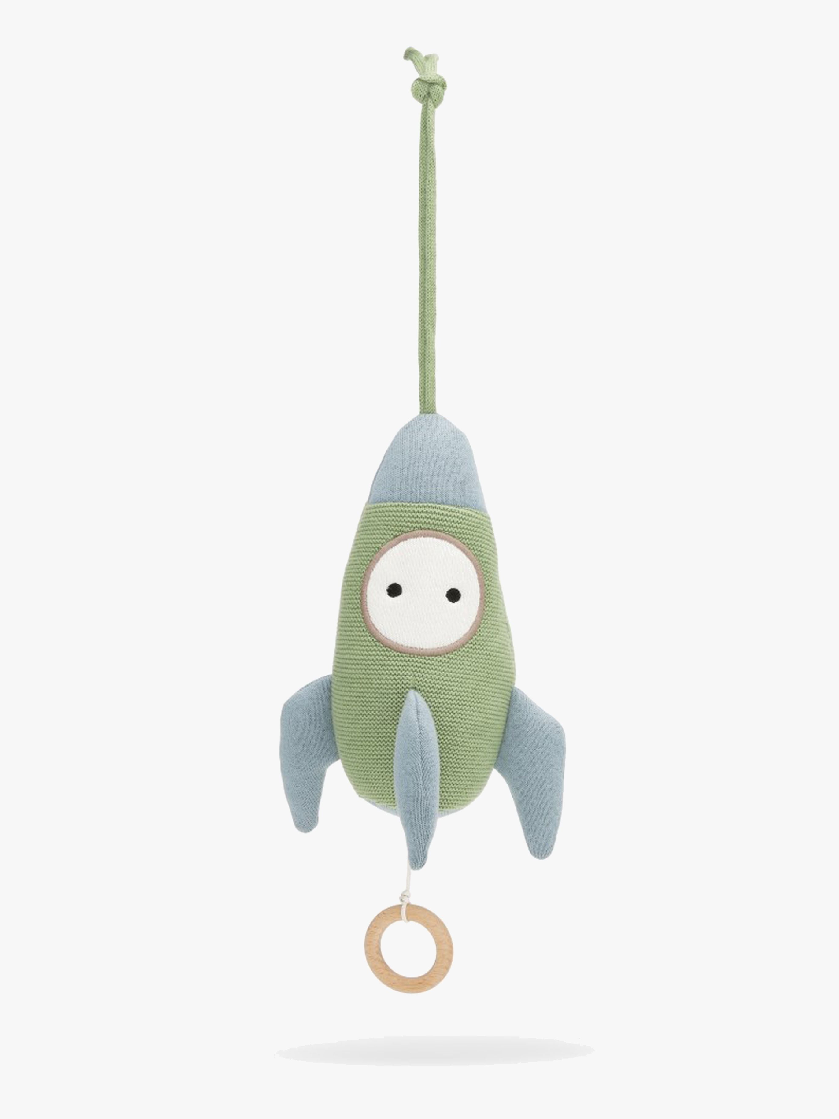 Spilledåse fra Vanilla Copenhagen med beroligende lyde. Perfekt til at hænge på barnevognen eller vuggen. - Sødt design. - Blødt materiale. - Stimulerer høresansen. - Træk i snoren for at høre en beroligende melodi. - Kan sættes fast på vuggen, klapvognen, barnevognen eller autostolen. - Perfekt til træning af dit barns hånd-øje-koordination og finmotorik. - Anbefalet alder: Fra nyfødt. - Økologisk bomuld, genanvendt polyester, træ.