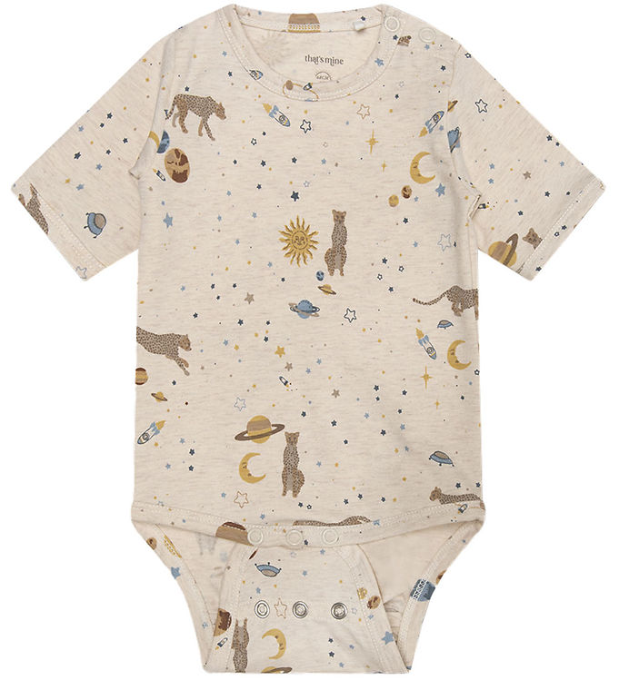That's Mine Body k/æ - Mika - Leo Espace er den perfekte kombination af stil og komfort til dit barn. Denne body er designet med fokus på kvalitet og funktionalitet, hvilket gør den ideel til både leg og afslapning. Det unikke Leo Espace mønster tilføjer et sjovt og livligt element til dit barns garderobe, samtidig med at det sikrer, at de skiller sig ud i mængden. Materialet er blødt og behageligt mod huden, hvilket gør det muligt for dit barn at bevæge sig frit uden irritation. Den praktiske knaplukning gør det nemt at tage bodyen af og på, hvilket er en stor fordel for både forældre og børn. Den er perfekt til daglig brug, men kan også styles til særlige lejligheder. That's Mine er kendt for deres fokus på bæredygtighed og kvalitet, og denne body er ingen undtagelse. Du kan være sikker på, at dit barn vil føle sig godt tilpas hele dagen, samtidig med at du gør en god investering i en holdbar og stilfuld beklædningsgenstand. Gør garderoben komplet med denne skønne body, der kombinerer det bedste fra design og funktionalitet.