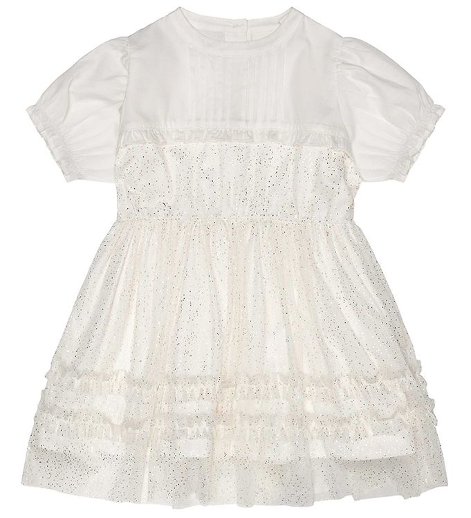 Kjolen er lavet af blødt og åndbart materiale, som sikrer, at dit barn kan bevæge sig frit og komfortabelt hele dagen. Den har en elegant silhuet, der fremhæver enhver lille piges charme. Kjolen har desuden fine detaljer, der tilføjer et ekstra touch af elegance.